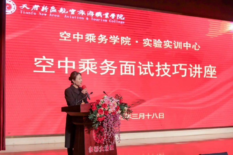 近日,我??罩谐藙?wù)學(xué)院攜手實(shí)驗(yàn)實(shí)訓(xùn)中心,在多彩大講堂開(kāi)展了一場(chǎng)關(guān)于空乘面試技巧的講座。